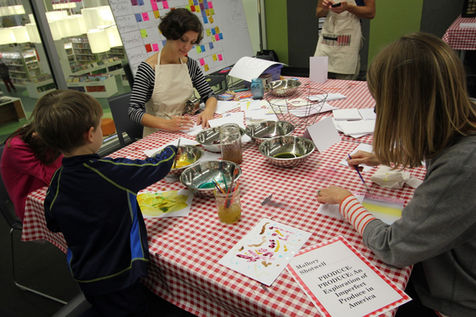 We called our space and project Community Research Kitchen in order to emphasize that the collaborative nature of the learning we hoped to do about foodways together with our community. We adapted the flexible but rather generic Bubbler space to have more of the warm qualities we associated with our work by adding gingham tablecloths throughout and installing the contents of our pantry.