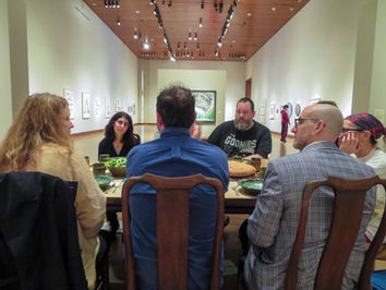The series was initially planned for live presentation in the Chazen Museum, where experts and stakeholders gathered around our own dining room table. We cooked dinner for our guests and served on ceramics created for the project by Hannah Schelb. Gallery-goers were able to pass by or stop to listen in.