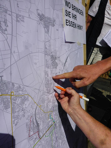 "MARKTFORSCHUNG" or "market research" consisted of four weeks of research with individuals, institutions and groups, during which we collaboratively mapped hundreds acts of carrying food around the region.