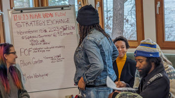 Spatula&Barcode collaborated with Karin Wolf, Chele Isaac and Yusuf Bin-Rella to host two meals (a dinner and a breakfast) for the members of Rural Urban Flow - ''a network of agri/cultural producers primarily in Sauk County and Milwaukee who organize exchanges across the rural-urban continuum (cite)''. At the dinner at Maia Space (which was prepared collaboratively by the attendees) the ongoing work of the organization was introduced to guests from Madison and from Georgia. At the breakfast (which was prepared by Bin-Rella and Peterson), network members debated issues and set goals for the upcoming year.
